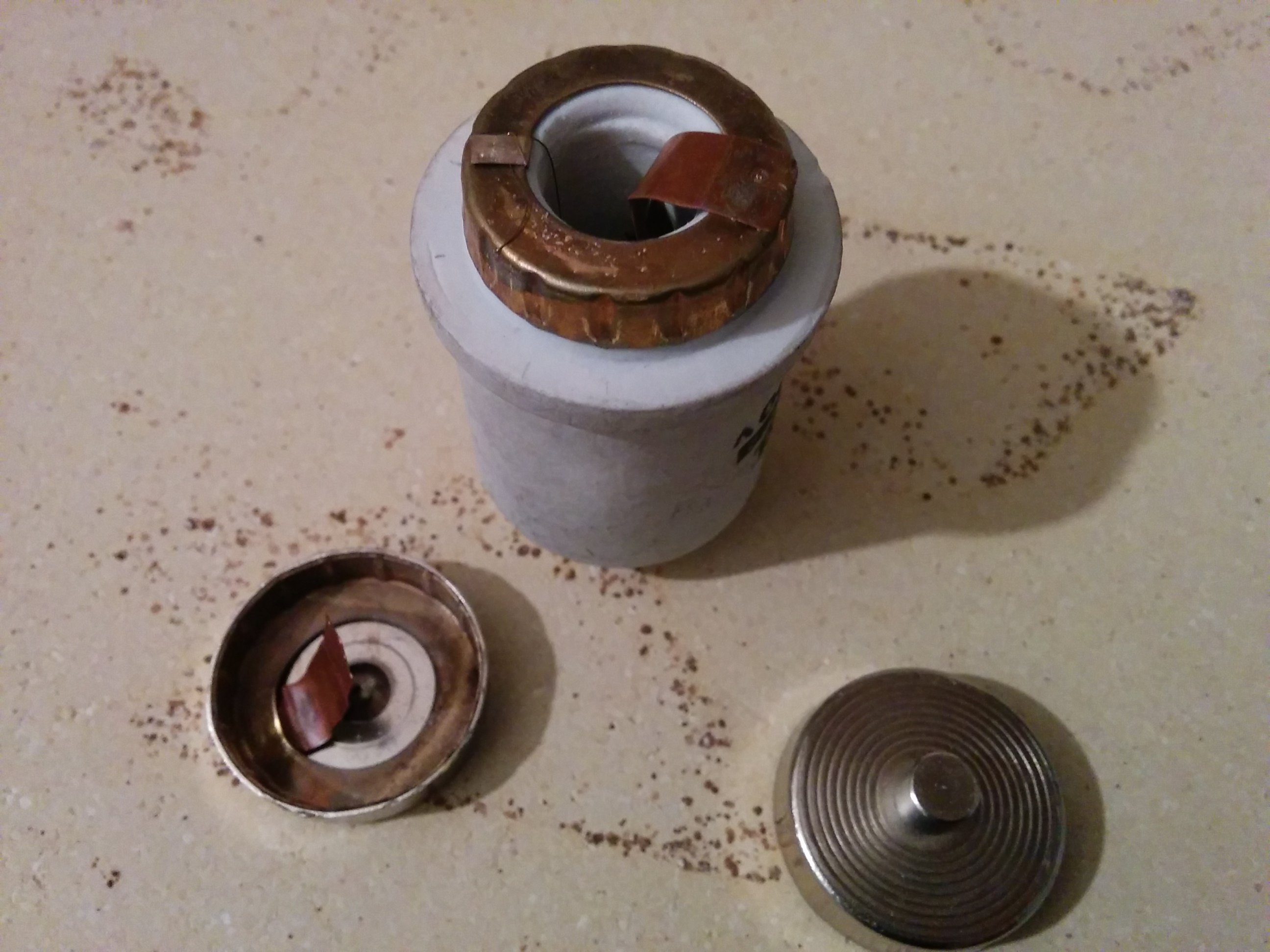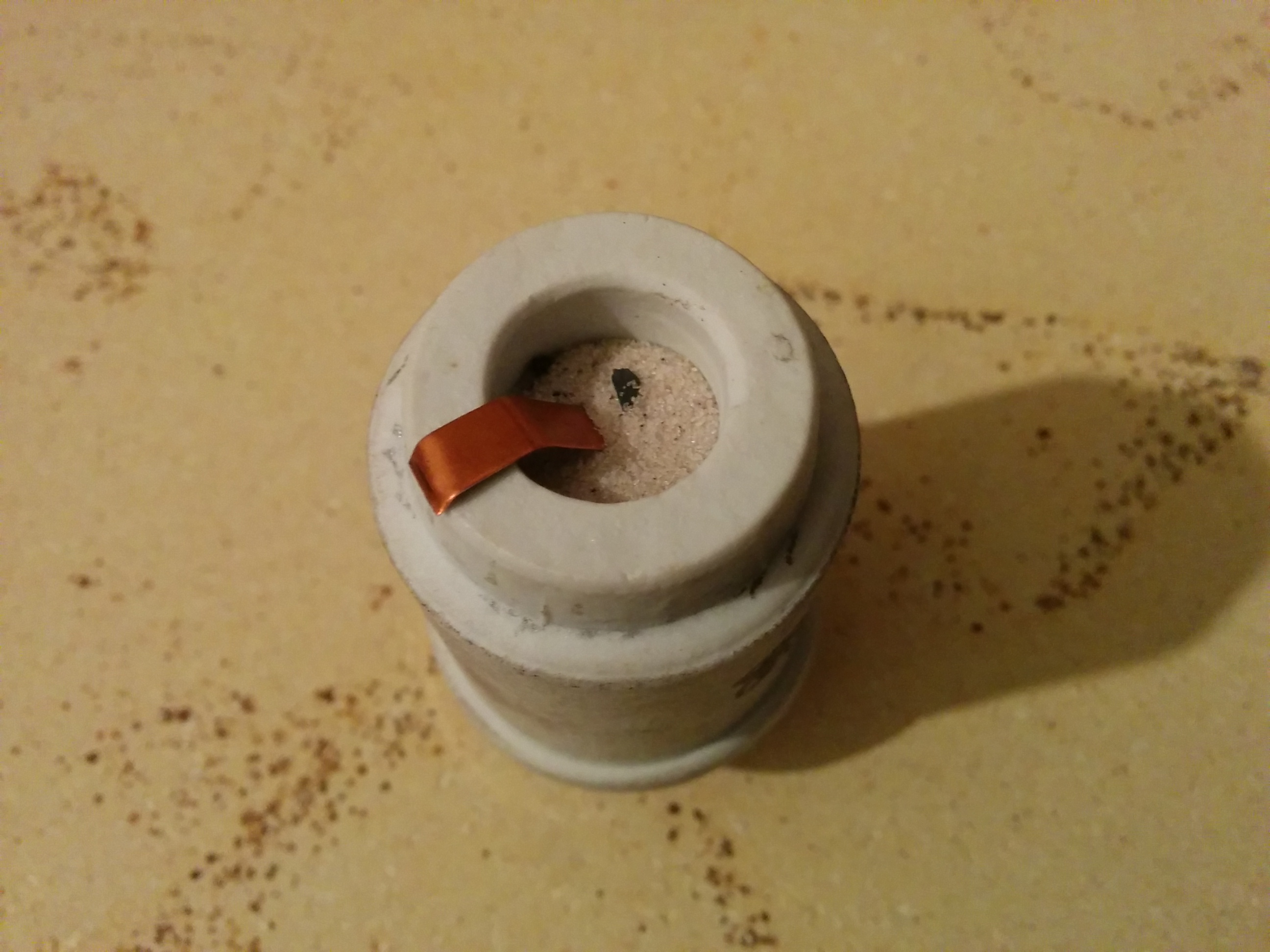 I started by removing the caps, there is silica and a copper ribbon inside the fuse.